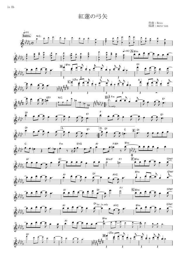 Alto Saxophone Baritone Saxophone. Attack on Titan - Guren no Yumiya in Eb 200.